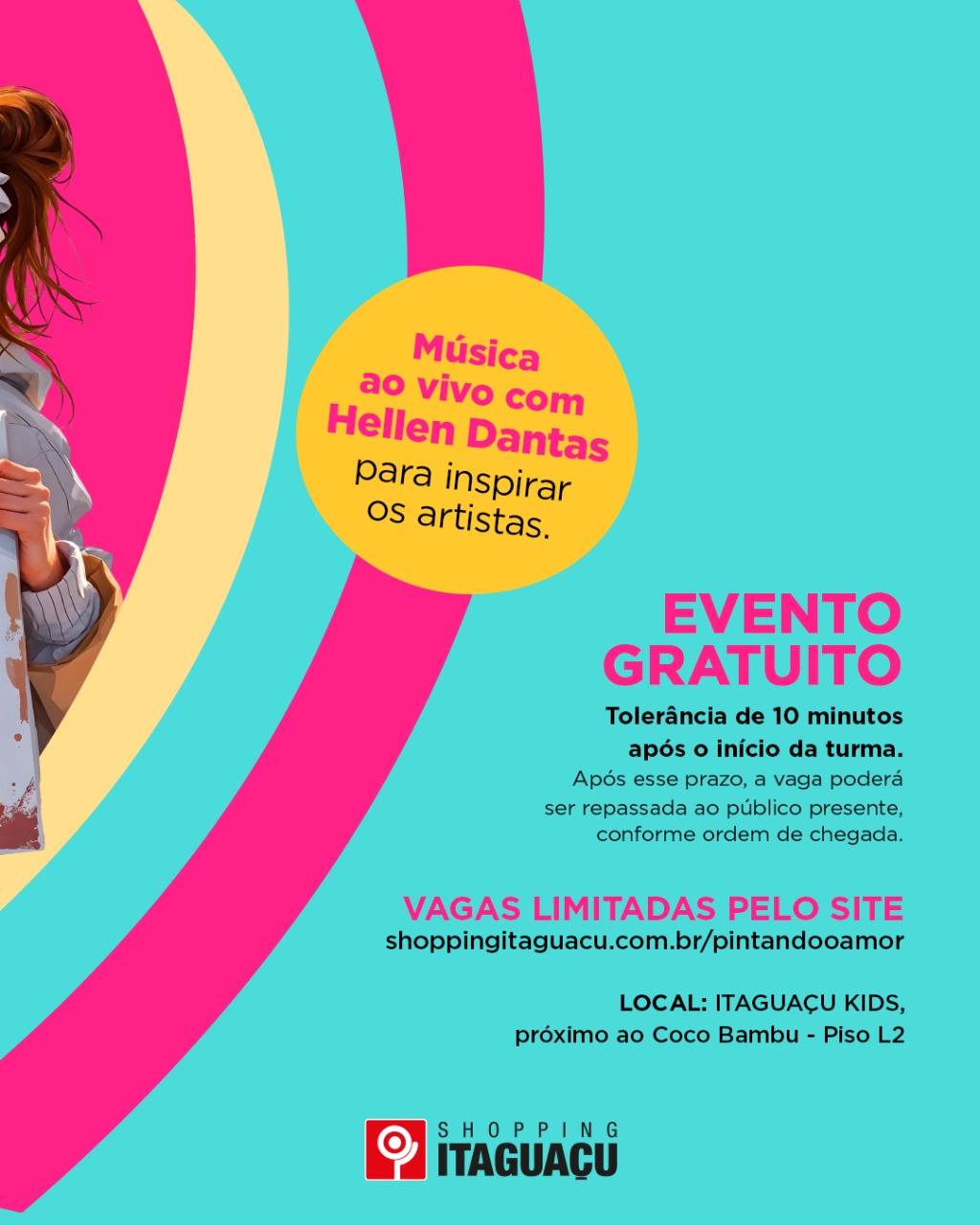 Em comemoração ao Dia dos Namorados, o Shopping Itaguaçu promove mais uma experiência criativa e afetiva para casais de todas as idades. Nos dias 14 e 15, o espaço Itaguaçu Kids, localizado no piso L2, próximo ao restaurante Coco Bambu, receberá a ação “Pintando o Amor”, com sessões de pintura em dupla e trilha sonora ao vivo.