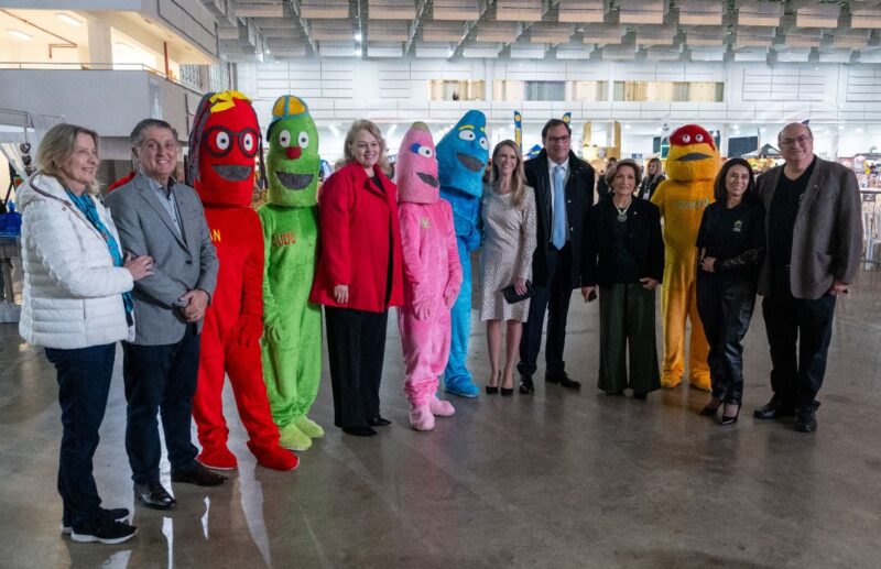 O tempo todo os personagens que são os símbolos da feira, os bonecos Léo, Rodolfo, Dudu, Aline e Fran nas cores azul, amarelo, verde, rosa e vermelho, respectivamente, distribuíram alegria e fizeram muitas fotos com crianças e adultos para marcar presença na Feira da Esperança.