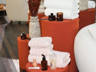 A coleção também se estende para a linha décor, com mantas, peseiras e almofadas, incluindo opções mais leves, ideais para o verão. Além de uma linha completa de fragrâncias para o lar, composta por vela perfumada, sabonete líquido, água perfumada para tecidos, difusor e perfume para ambientes, que ampliam a experiência sensorial proposta pela marca. Já a linha de toalhas apresenta cinco modelos distintos, disponíveis nas cores branco, bege, rose, cinza e marrom, mantendo o mesmo padrão de elegância discreta e conforto.