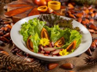 QUERIDINHOS DA VEZ – Segundo a chef, o Quibe de pinhão é geralmente um dos mais pedidos durante o Festival. O prato é servido como entrada, acompanhado de chutney da estação. Outra opção de entrada é a Salada Pinha, um mix de folhas, tomate cereja, pinhão, chutney de tomate de árvore e queijo Mantiqueira curado.