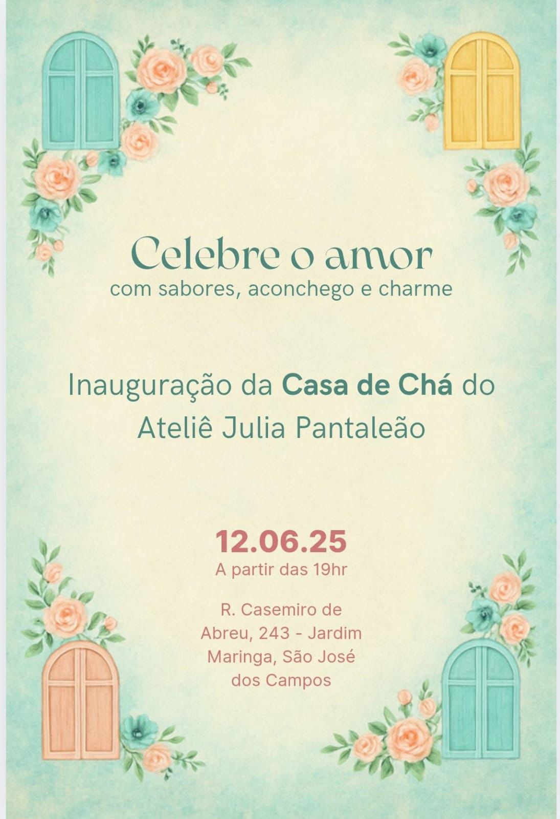 No Dia dos Namorados, um convite para celebrar o amor de um jeito delicado e cheio de significado: no dia 12 de junho de 2025, a partir das 19h, será inaugurada a Casa de Chá do Ateliê Julia Pantaleão, um espaço pensado para envolver os sentidos com sabores, aconchego e charme. Conhecida por seu olhar […]